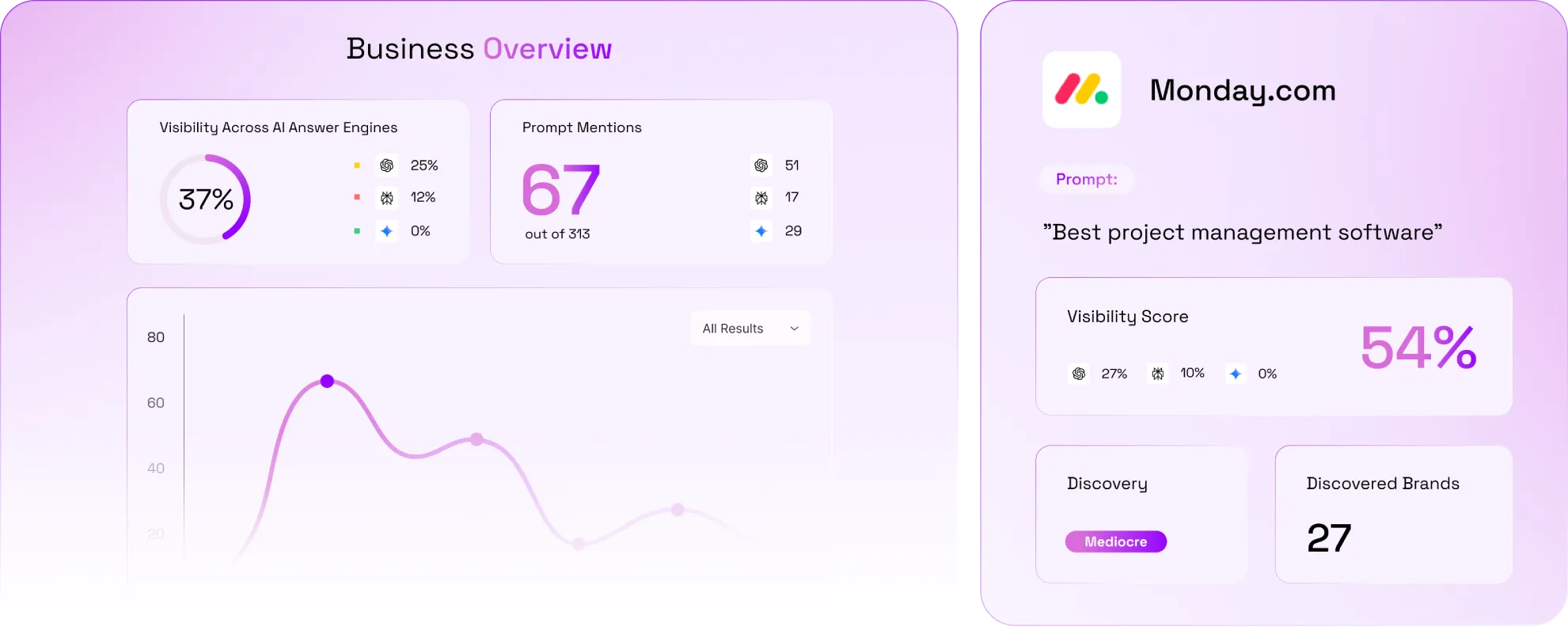 Be fully in the know each step of the process, with our detailled reporting tools that allow you to gain valuable insight into your ranking across AI ask engines.